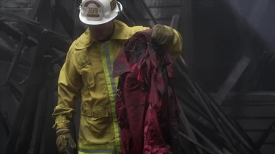 Toby est dans la forêt et retourne sur les lieux de l'incendie. Il y voit un pompier fouiller dans les débris et y trouver un manteau rouge calciné. Après ça, le pompier jette le manteau dans une pile d'objets brûlés.