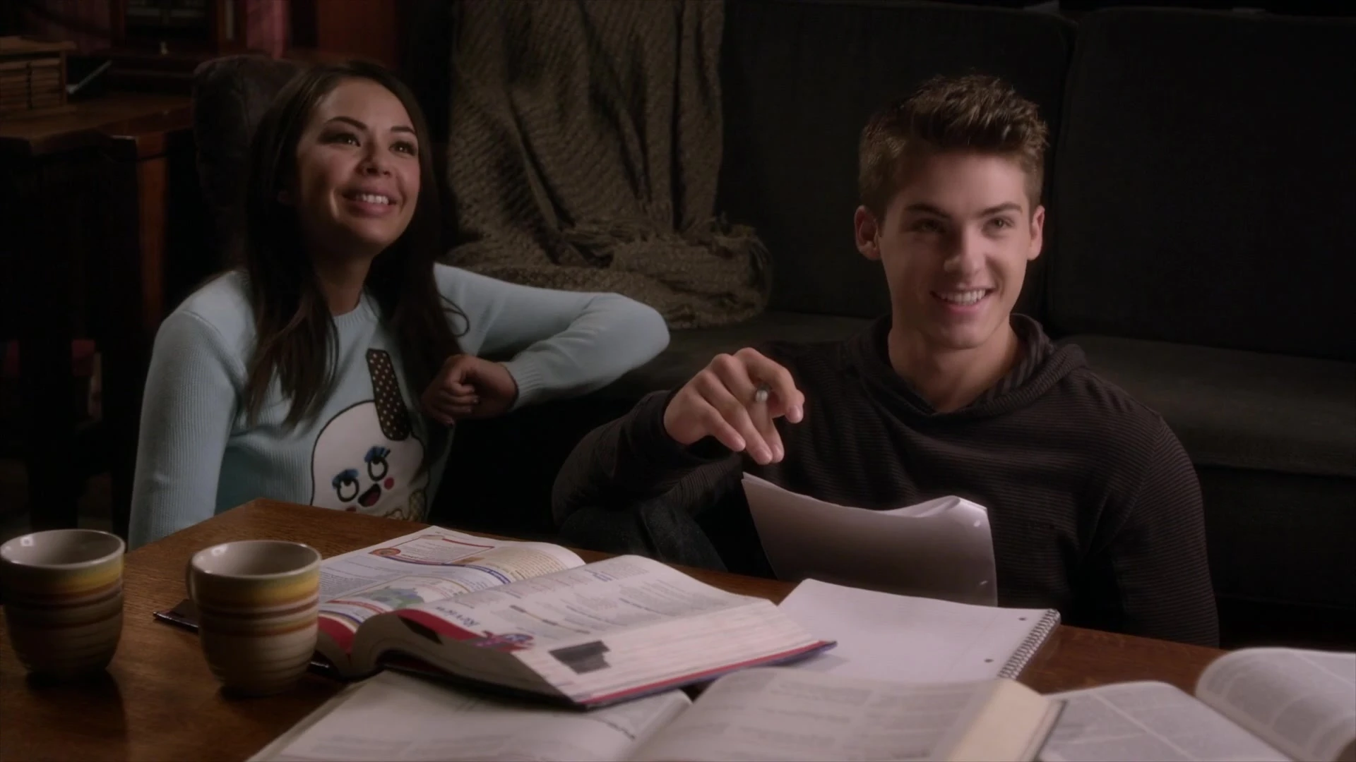Aria est assise sur son lit et elle fait ses devoirs. Bryon demande si elle a besoin de quelque chose. Aria dit à Byron que Mike et Mona c'est une très mauvaise idée. Byron répond que Mona semble l'aimer et il suggère qu'ils devraient gardent un œil sur la situation, mais tout en gardant leurs distances. Aria dit qu'elle va essayer de faire ça. Puis, Byron dit qu'il a quatre places pour aller au cinéma en famille, le lendemain.