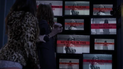 Tout à coup, dans un magasin derrière elles, les écrans de télévision commencent à clignoter dans la vitrine. Emily les remarque et prévient les filles. Les écrans montrent une photo d'Alison quittant la chambre d'hôpital d'Hanna après que cette dernière ai eu son accident. Soudain, la phrase "On est toutes dans le même bateau" apparaît sur l'image d'Alison, et est rapidement remplacée par la lettre "A". Emily dit aux autres que maintenant elles ne peuvent pas dire quoi que ce soit parce que personne ne les croira s'ils voient cette photo d'Alison. Spencer ramasse une brique et veut détruire les écrans, mais elle est arrêtée par ses amies. Ensuite, des images d'elles en ce moment même apparaissent à l'écran. Spencer regarde les écrans avec horreur tandis que les autres partent. Un message de "A" apparaît: : "Agissez normalement, pétasses". En colère, Spencer jette la brique au sol.