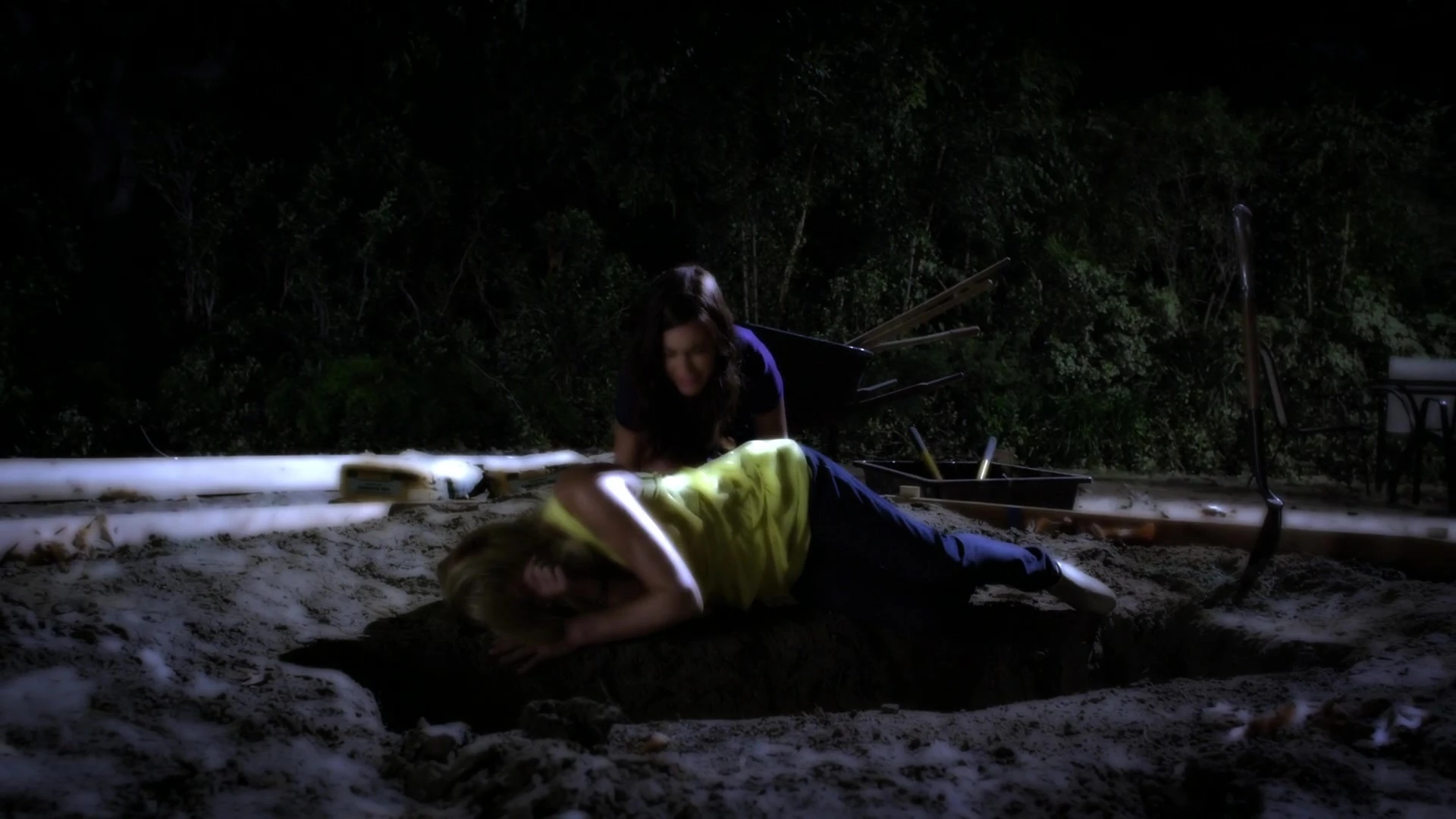 Dans la chambre de Spencer, cette dernière montre à Emily et Aria la vidéo des aveux de Melissa. Aria dit que Melissa a tuée, accidentellement, Bethany Young, mais Spencer la corrige en disant que Melissa pensait que Spencer avait tué Bethany. Emily ajoute que quand Melissa a vu Bethany, elle avait les vêtements de Alison. Spencer pense qu'elles avaient des vêtements différents, des répliques de ceux d'Alison. Les filles se demandent si c'était le plan de quelqu'un que Bethany prenne la place d'Alison dans la tombe et que tout le monde pense que c'était cette dernière. Emily dit qu'elles ont besoin de trouver un moyen de contourner l'image de "A" à l'hôpital. Aria et Spencer sont confuses et Emily précise qu'elle voulait dire Alison et pas "A". Spencer se demande alors ce qu'elle va faire avec la vidéo de Melissa.