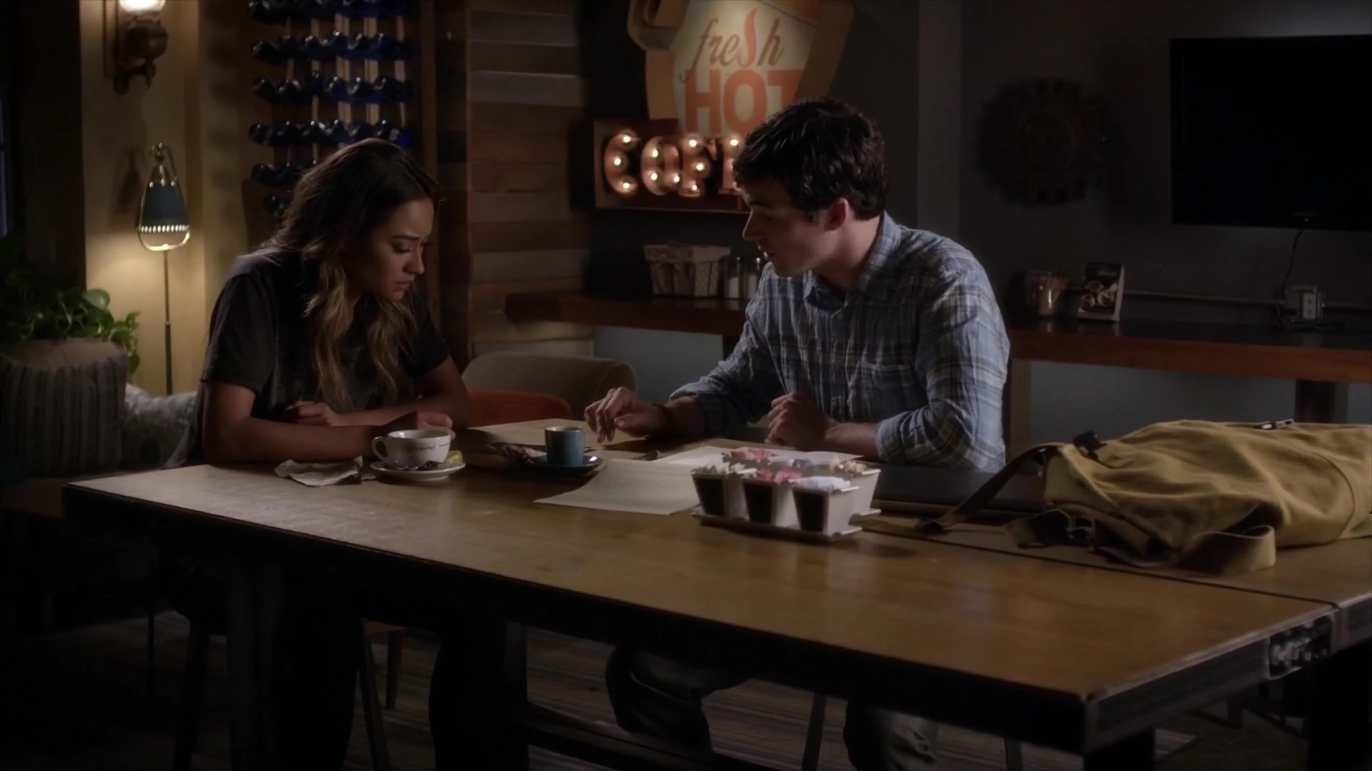 Au Grille, Spencer et Toby tentent de dîner après l'incident. Ce dernier se sent coupable de ne pas avoir pu aider Caleb et il se dirige vers la porte. Spencer l'arrête et lui dit qu'il n'est pas fautif. Toby lui demande pourquoi elle était distante pendant la soirée, et si ça a un lien avec ce que Melissa lui a envoyé. Spencer répond que ce qu'elle a reçu était la vérité, cependant elle ne sait pas quoi faire avec.