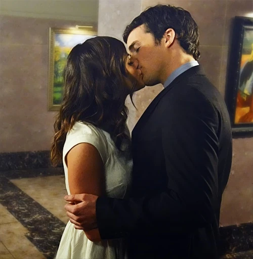 Quand elle se retourne pour partir, Ezra lui prend le bras et l'embrasse.