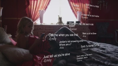 "Une petite question, par curiosité... Qui embrasse le mieux : Hanna, Spencer ou moi ?" |