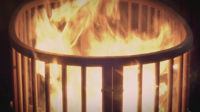 Dans la maison de poupées, les filles commencent à paniquer parce que le feu prend de l'ampleur. Pour éteindre l'incendie, elles tirent sur un rideau et se retrouvent face à Charles, avec un masque, qui les regardent de l'autre côté d'une cloison en verre. Les filles décident alors de continuer de le provoquer et lance toutes ses affaires au fau. Charles tire enfin sur l'alarme d'incendie et la porte de la chambre s'ouvre. Les filles se dépêchent de quitter la pièce.
