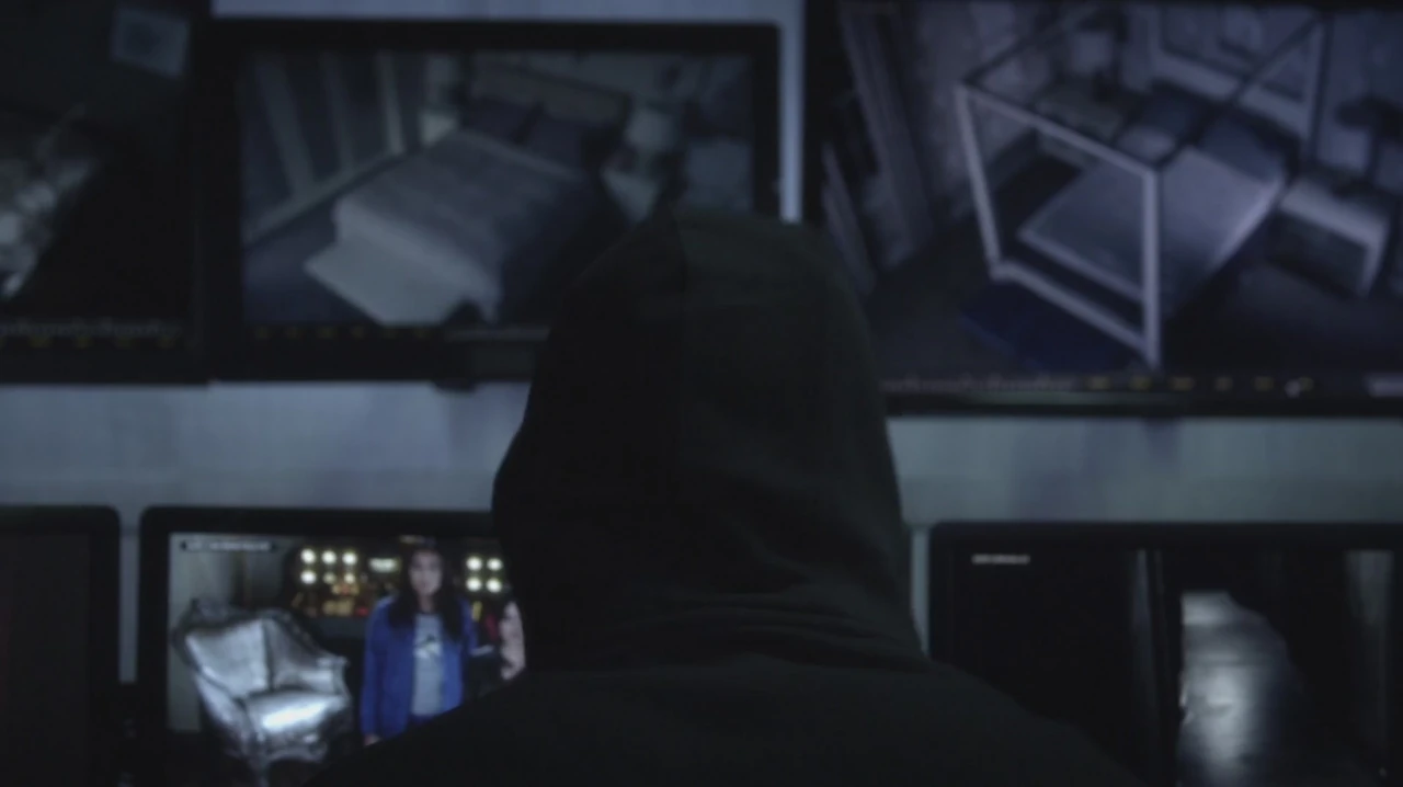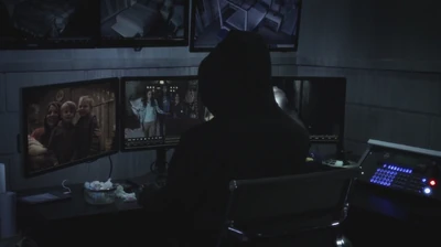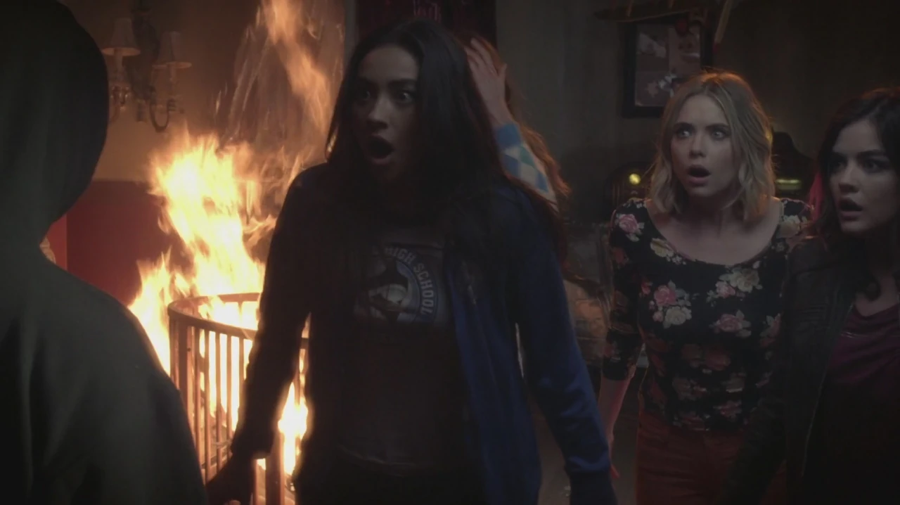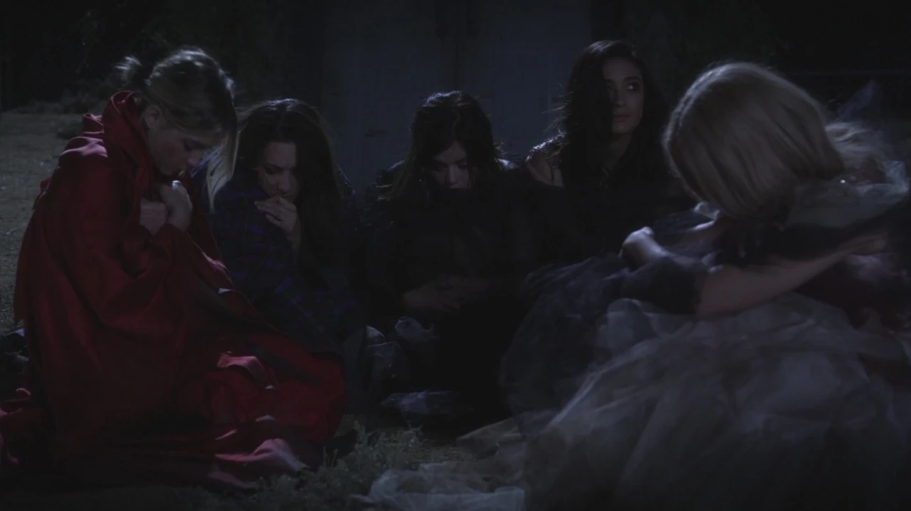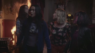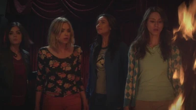 Sachant que Charles les observe, elles commencent à brûler ses affaires, à l'aide de la pellicule du film, en essayant de lui faire libérer Mona. Charles regarde les filles sur un écran, et sur un autre écran, il voit Alison marcher dans les bois. Charles est face à un dilemme : enlever Alison ou sauver toutes ses affaires du feu. Dans les bois, Alison entend le bruissement des feuilles et est soulagée de voir que Caleb et Ezra l'ont retrouvé.