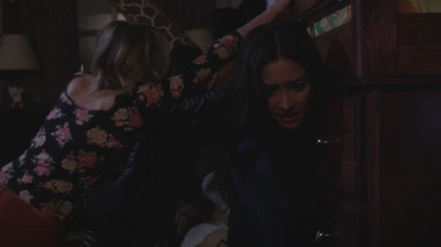 Les lumières s'éteignent. Spencer dit aux autres qu' elle était près de Charles quand elle était dans sa chambre. Spencer pense que c'est quelqu'un de familier. Les filles n'ont d'autre choix que de rester à l'extérieur sous l'orage. Elles se blottissent sous la pluie battante.
