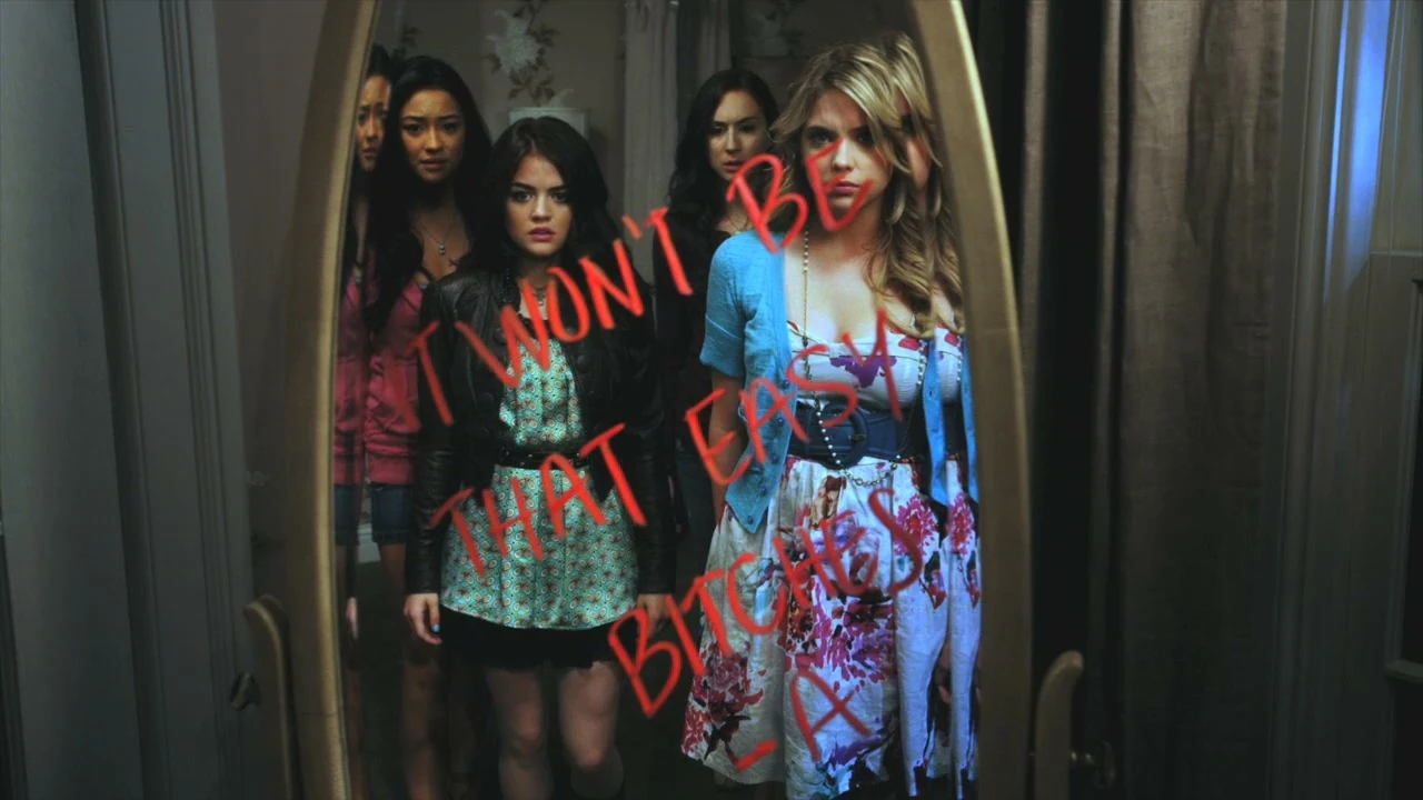 Hanna et Spencer rentre chez Spencer et trouve un message sur le miroir de la chambre : "Ce ne sera pas aussi facile les pétasses -A". Elles appellent les autres filles. Le pot de fleur cassé est arrangé d'une façon étrange qu'il forme une tombe. Le message est écrit avec du rouge à lèvres de la couleur d'Alison.