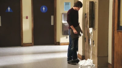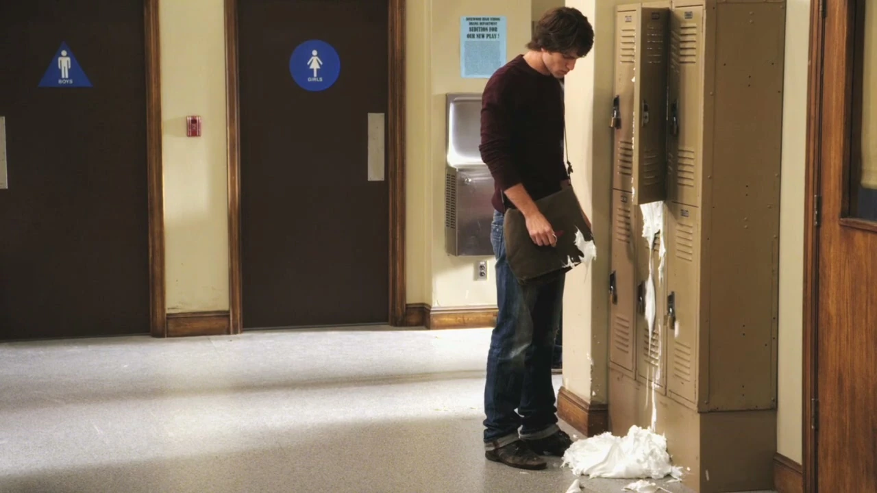 Après les cours, alors que Toby ouvre son casier, une tonne de mousse a raser en sort et un groupe de garçon rigole de lui derrière. Emily regarde la scène en silence avant de s'en aller.