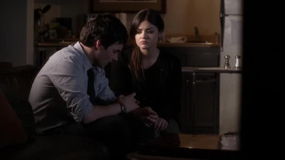 Aria part de la fête, et se dirige vers l'appartement d'Ezra, pour lui parler de ce qui se passe entre lui et Maggie. Ezra ne veux pas lui en parler car il dit ne pas vouloir l'entraîner dans toutes ces complications. Aria prend la main d'Ezra et lui dit qu'elle ne partira pas avant qu'il lui ai tout dit.