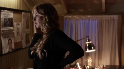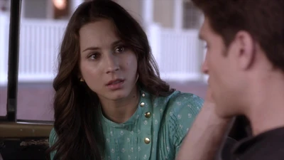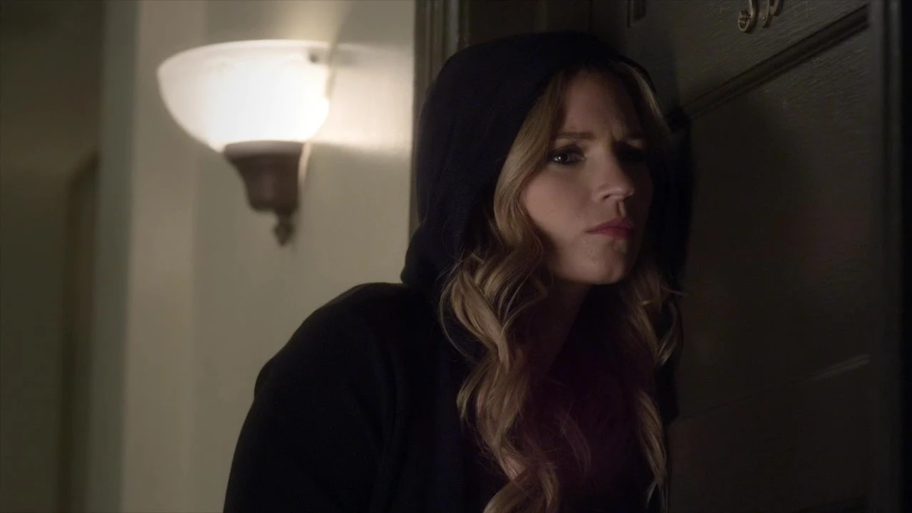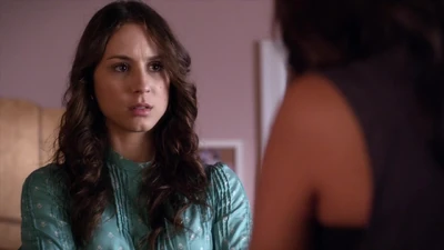 À l'extérieur de l'appartement, une blonde avec un sweat à capuche noir écoute la conversation d'Aria et Ezra. Lorsqu'elle se retourne, nous découvrons qu'il s'agit de CeCe Drake.