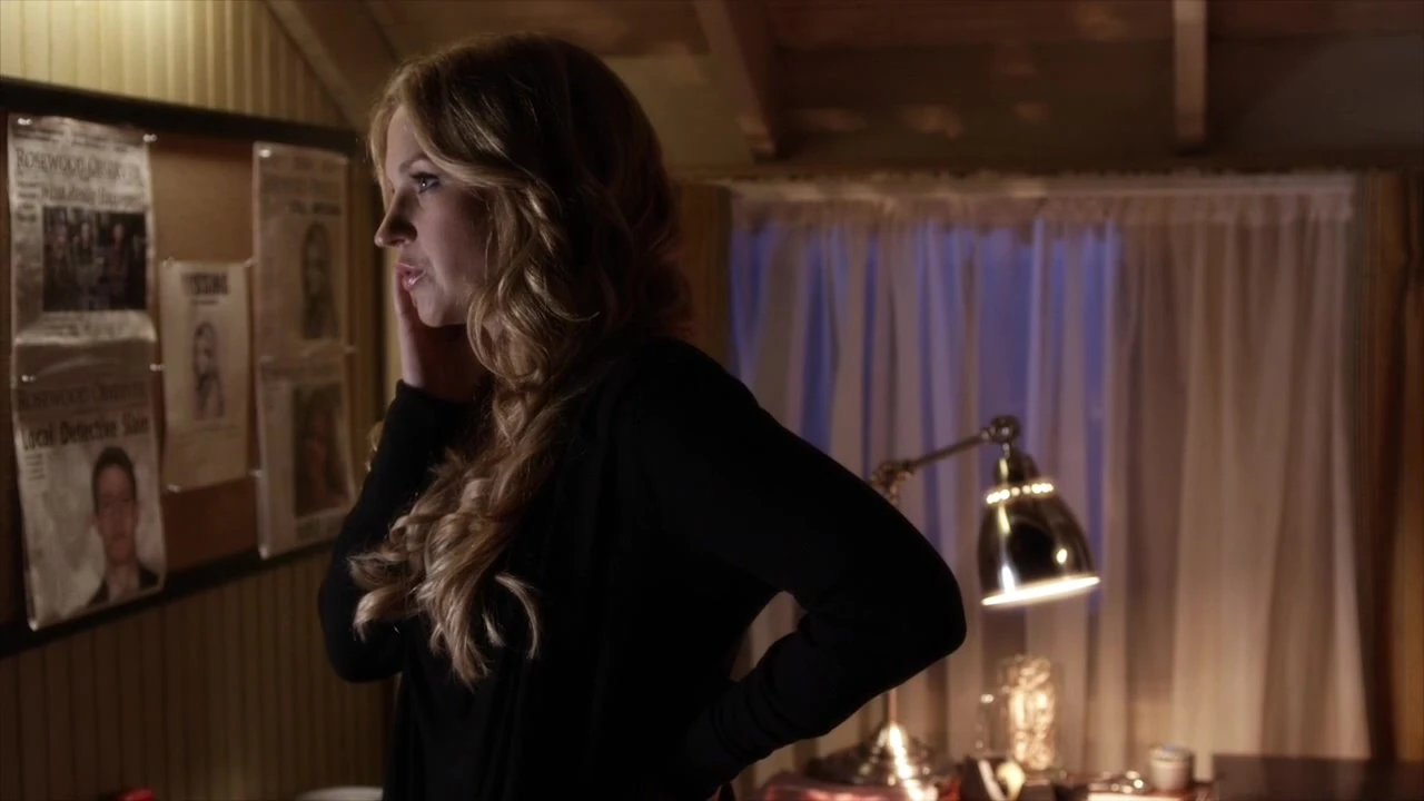 CeCe se trouve dans un appartement, elle regarde des photos et des articles de journaux accrochés au mur et elle est au téléphone. Elle dit à son correspondant qu'elle ne compte pas l'attendre toute la nuit et qu'elle est sûre et certaines qu'elle ne remettra pas les pieds à Rosewood. Puis, nous découvrons qu'il y a un imper rouge, posé sur une chaise.