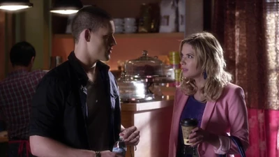 Pendant ce temps, Hanna et Caleb font des plans pour la soirée - Hanna ne veut pas y aller. Caleb lui dit que sa mère lui a envoyé un message lui demandant d'y emmener Hanna afin qu'elle continue à vivre sa vie. Hanna donne à Caleb un baiser avant de partir. Quand elle ouvre son casier, une enveloppe tombe. Elle l'ouvre et trouve un mot disant: "Peut-être que ça pourrait aider ta mère" avec des liasses de billets. Quant elle lève les yeux, elle voit que l'étranger l'observe encore.