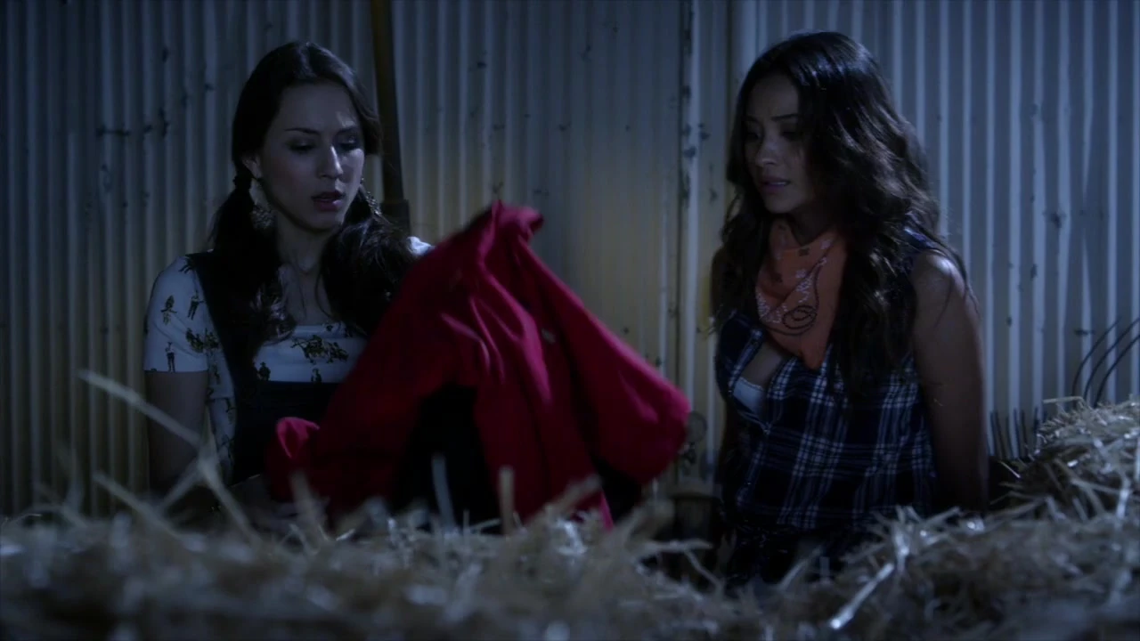 Emily raconte à Aria pourquoi elle doit absolument parler avec Ezra. Lorsqu'Aria s'en va, Emily aperçoit Red Coat à l'étage. Plus tard, Emily et Spencer suivent Red Coat, mais elle est trop rapide et elle a disparue dans la rue avant qu'elles ne puissent la rattraper. Elles courent vers un homme pour lui emprunter son camion, mais refuse. Elles essaient de voler son camion pour poursuivre Red Coat. Malheureusement, Spencer ne sait pas comment le conduire. Le camion avance lentement, puis s'arrête et elles regardent à l'arrière et voient quelque chose qui avance dans la paille du camion, il s'agit de la fille à l'imper rouge. Spencer envoie un message à Aria, lui demandant d'emmener Jake dehors, puis les filles sautent du camion. Emily aperçoit un outil de jardin et commence à frapper dans le foin. Puis, les filles trouvent l'imper rouge, sans personne à l'intérieur.