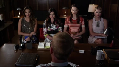 Les filles attendent Alison au rez-de-chaussée. Elles entendent M. DiLaurentis dire à Jason qu'il ne veut pas de police à l'église ou au cimetière. Jason lui dit qu'il a pris soin de ça, mais M. DiLaurentis en doute. Quand Hanna arrive, les filles lui demandent comment Alison va. Hanna leur dit qu'Alison va enterrer sa mère, alors elle ne va pas vraiment bien. Emily pense que Jason a enterré Jessica, mais Spencer le défend, disant qu'elle a vu son visage quand le chien a découvert le corps de Jessica. Aria est toujours paranoïaque, pensant que le chien était envoyé par "A" et c'est pourquoi il savait où était le corps. Spencer lui assure que ce n'était pas "A" et que les chiens sentent et creusent. Emily dit à Aria que "A" est mort. Spencer leur dit que Mona sait la vérité à propos d'Alison, qu'elle n'a pas été enlevée. Elles doivent parler avec elle. Elle fait également allusion à l'autre personne qui connaît la vérité sur ce qui s'est passé. Aria pense qu'elle parle de Noel Kahn, mais en réalité, elle parle d'Ezra.
