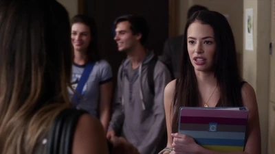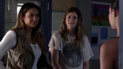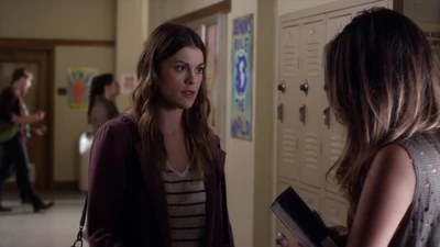 Paige croise Emily dans le couloir et lui dit qu'elle est désolée de ce qui est arrivé à Alison. Paige lui dit aussi qu'elle va prendre soin d'une nouvelle nageuse. Cette dernière est d'ailleurs de l'autre côté du couloir, à les regarder. Lorsqu'Emily s'en va, Mona va voir Paige et lui dit que ça fait plaisir de revoir Emily au lycée. Ensuite, Mona donne à Paige la carte pour Ezra.