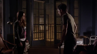 Aria est à la porte de l'appartement d'Ezra et elle hésite quant à frapper à la porte. Elle part presque mais est arrêtée par Ezra, sortant de son appartement. Ils parlent de son état de santé, du mensonge d'Alison et de comment ils doivent vivre avec ça pour le moment. Ezra ne sait pas que Shana est morte et demande à Aria de faire attention à elle. Aria s'en va et est troublée par le fait qu'Ezra ai changé de verrou. Avant de partir, Ezra la remercie d'être passée et Aria dit qu'elle avait envie de le voir.