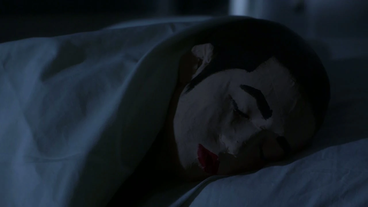 L'infirmière de Mona la regarde à travers la fenêtre de sa chambre, et elle est là, sur le sol on voit un masque d'Alison, le même que celui qu'a découvert Hanna.