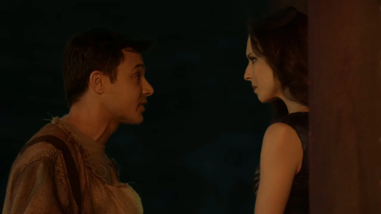 Le Fantôme de l'Opéra retourne dans le wagon et emmène Hanna à l'extérieur. Il s'agissait juste de Caleb. Ils s'embrassent.