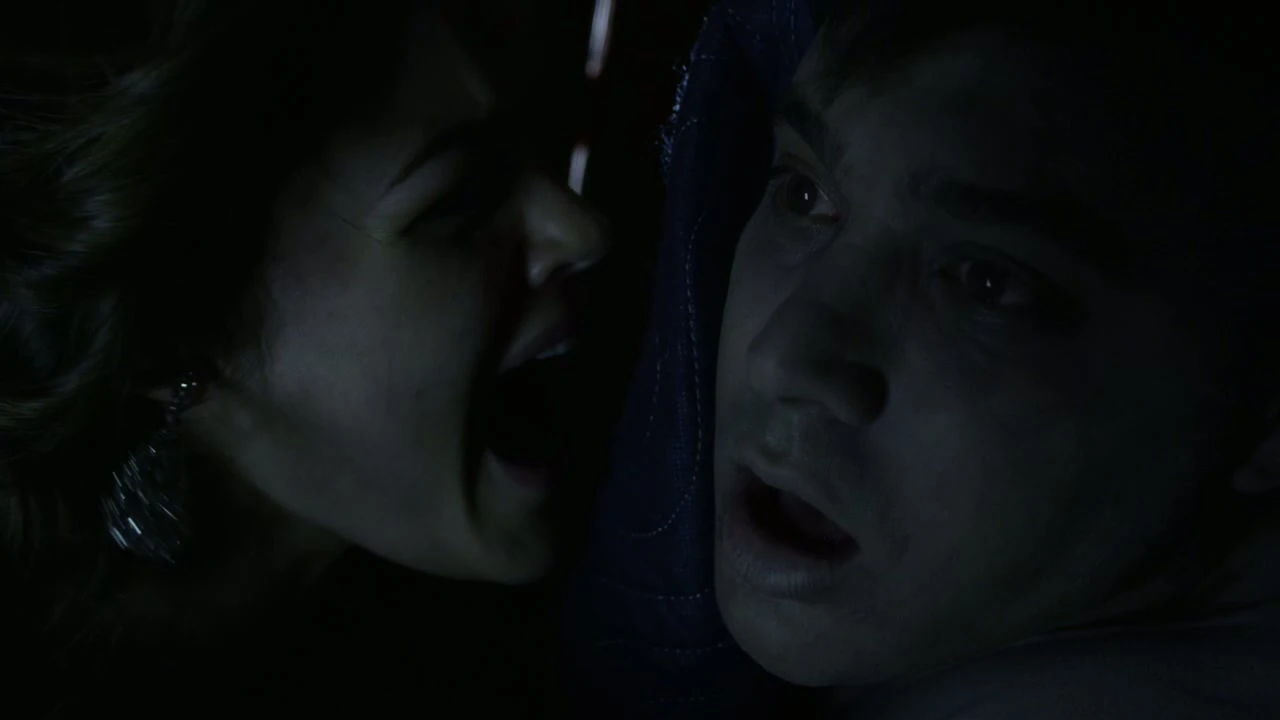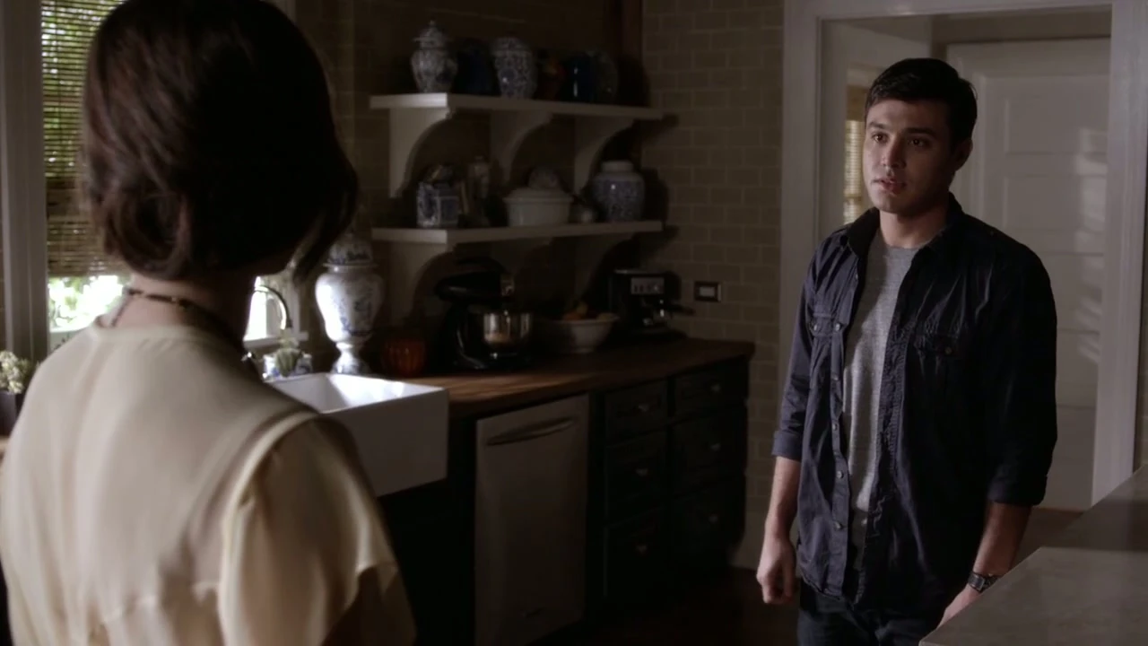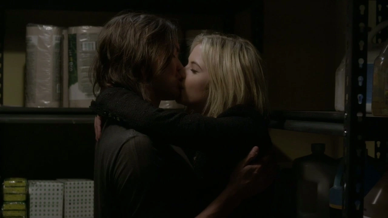 Hanna et Caleb sont dans un placard chez le dentiste. Il lui demande si elle va toujours à la fête dans le train fantôme sans lui.