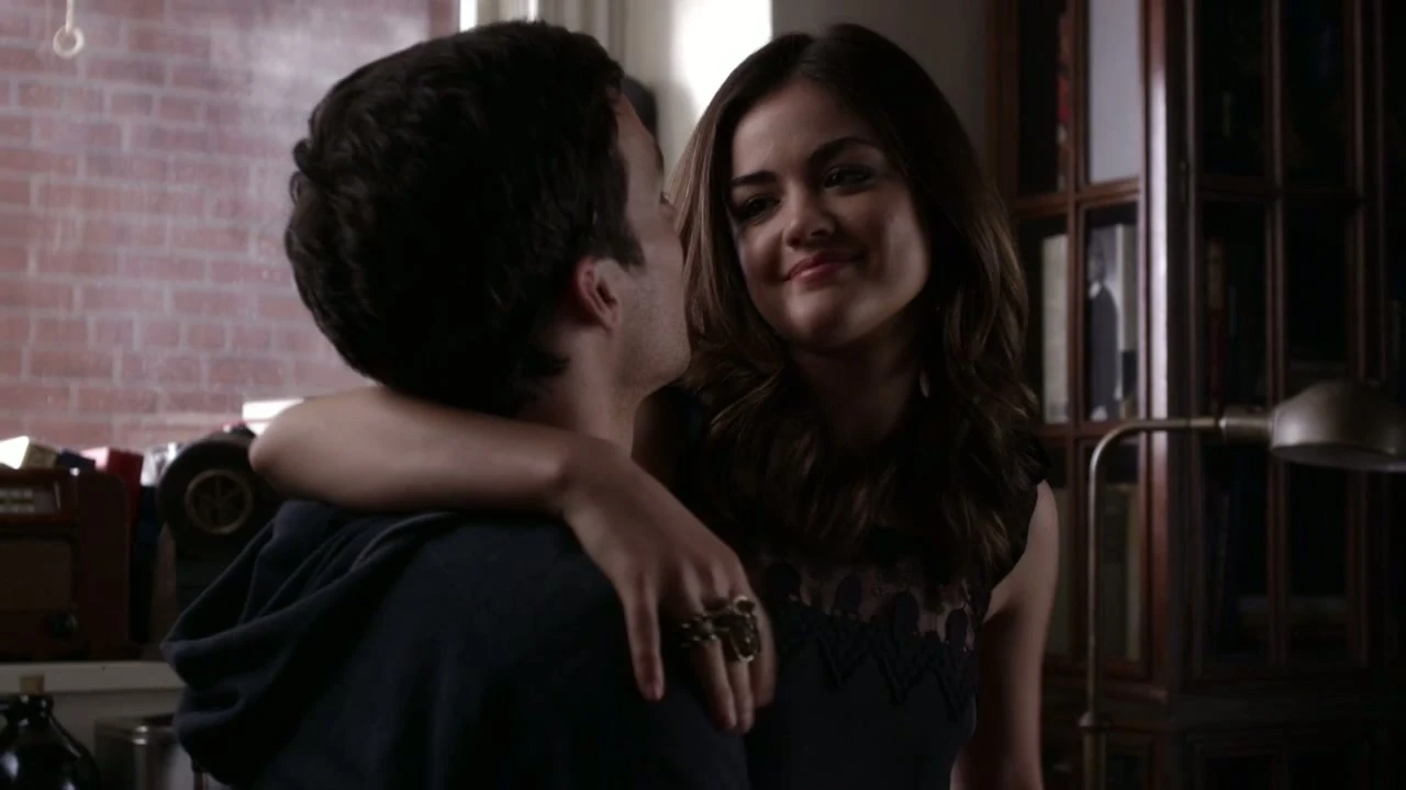 Aria essaie le bijoux qui va aller avec son costume quand Ezra arrive. Apparemment, elle et Ezra ont gardé leurs costumes secrets. Ezra ne peut pas aller à la soirée avec elle car il écrit une autobiographie et il a un entretien de travail. Ils sont interrompus par des cris d'enfants. Aria va leur ouvrir et leur donne des bonbons tandis qu'Ezra regarde le costume d'Aria.